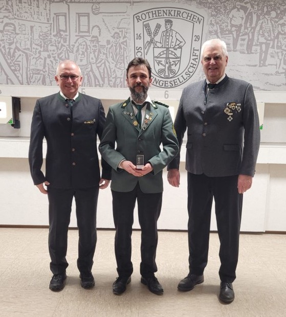 Von links: 1. Schützenmeister Ralf Grebner; Pokalsieger Leander Langguth; 2. Schützenmeister Wolfgang Bergmann