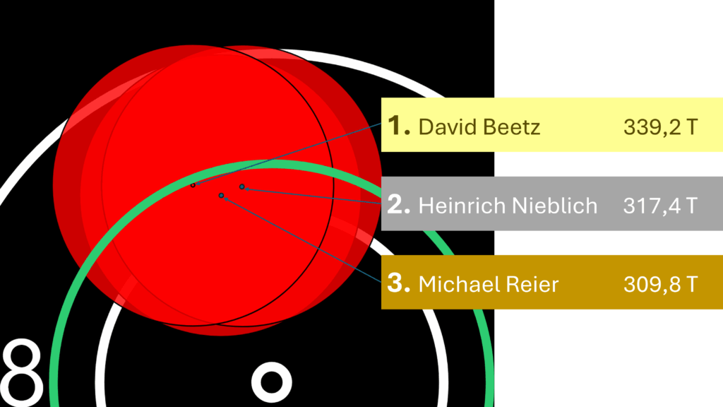 Derjenige der dem Ergebnis 349,0 Teiler am nähesten kam wurde Pokalsieger.